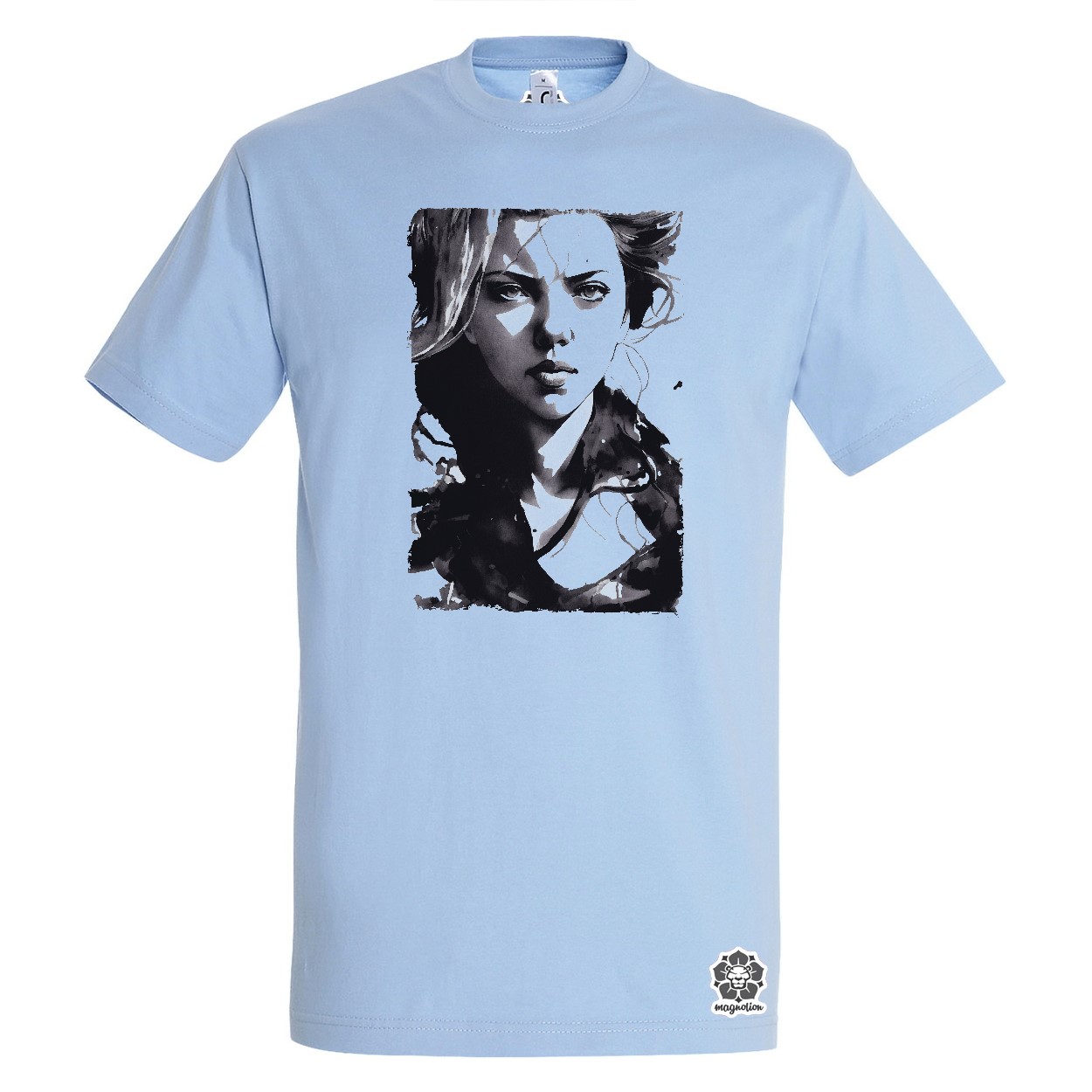 Fekete-fehér Scarlett Johansson rajz póló