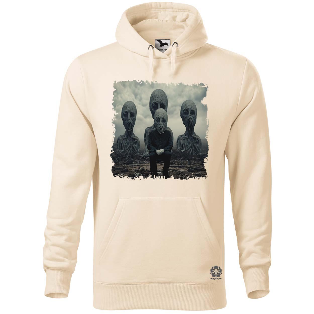 Példa női kenguru zsebes pulóver rendelés esetén egy XS-es fehér és egy M-es mandula vásárlásakor: