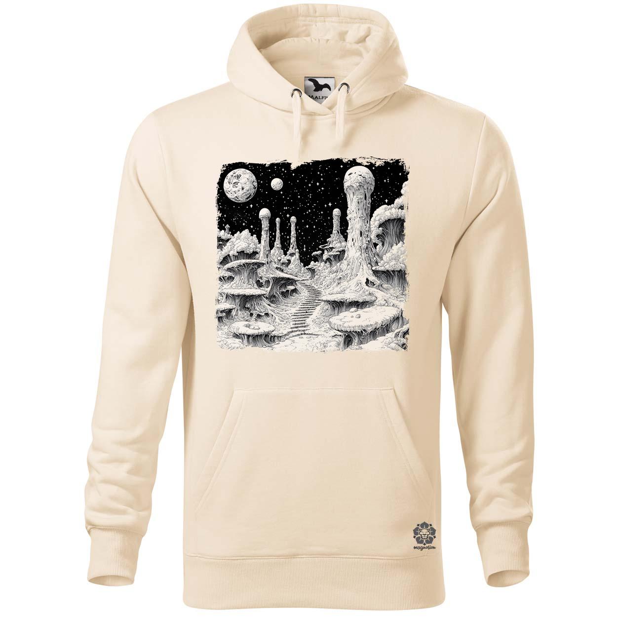 Példa női kenguru zsebes pulóver rendelés esetén egy XS-es fehér és egy M-es mandula vásárlásakor: