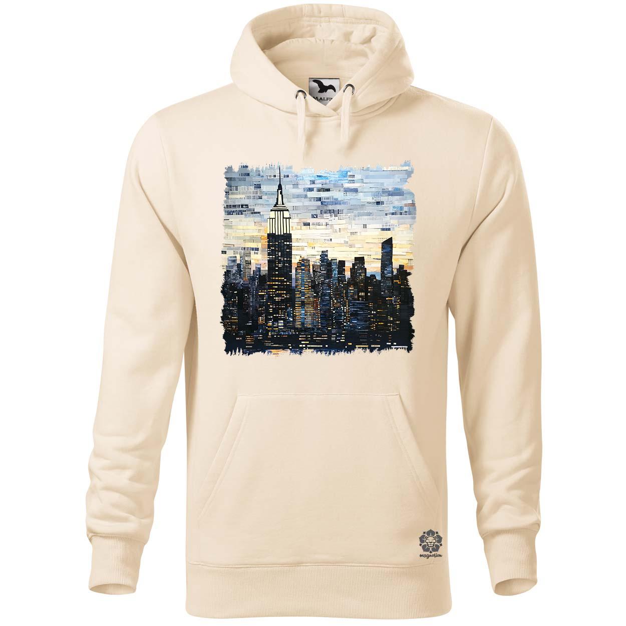 Példa női kenguru zsebes pulóver rendelés esetén egy XS-es fehér és egy M-es mandula vásárlásakor: